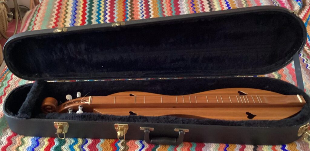 This instrument a walnut scroll head version with McSpadden hard case. It has a 28.5 inch VSL and the model is 4SHWW dated October 2007.